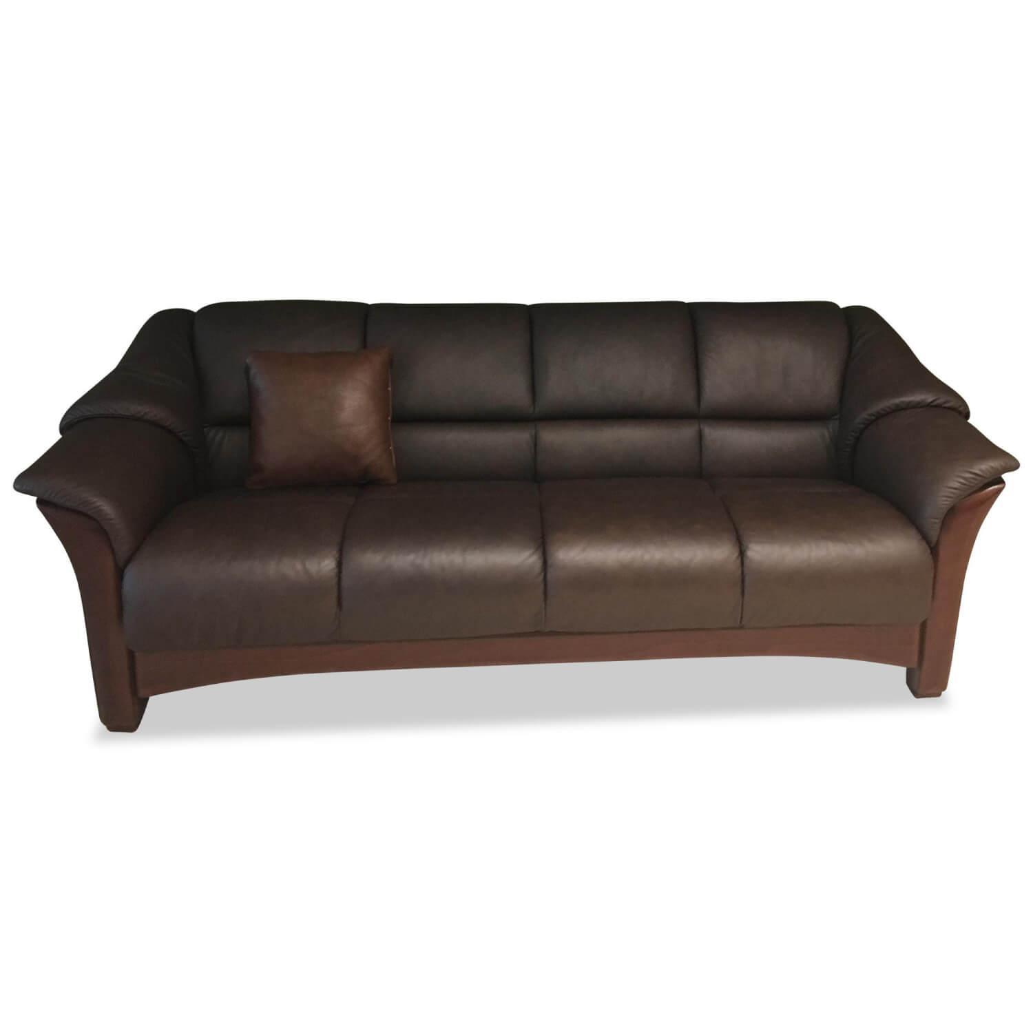 The ekornes oslo is one of our most opulent sofas. The ekornes collection oslo sofa comes with an exposed wood front. Made in norway, the high curved arms and exposed wood trim complete the warm, soft shape of this sofa.*choose from a wide selection of fabric and leather options to create a custom look. The highest quality engineering, construction and materials make this sofa a true standout. The olso by ekornes of norway is a classic style that features beautiful wood trim and unbelievably comfortable cushions.